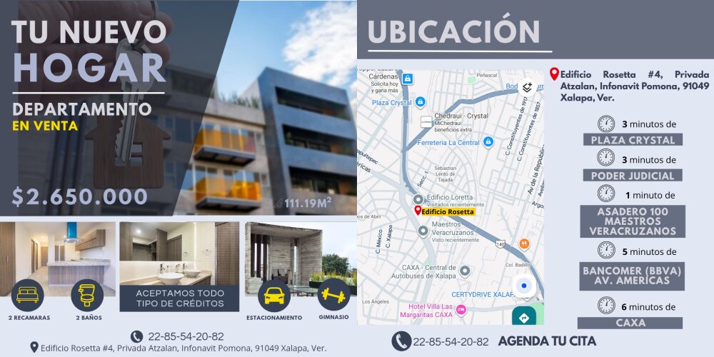 Ubicación: Edificio Rosetta Privada Atzalan #4, INFONAVIT POMONA, 91054, XALAPA.